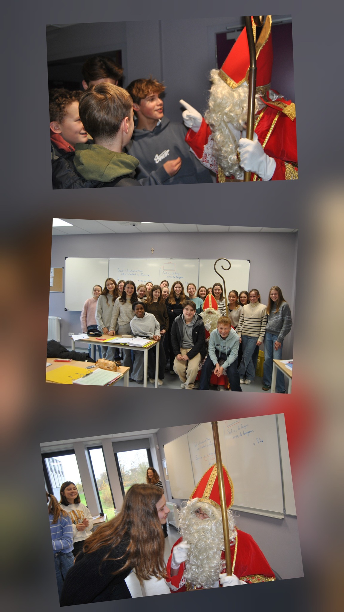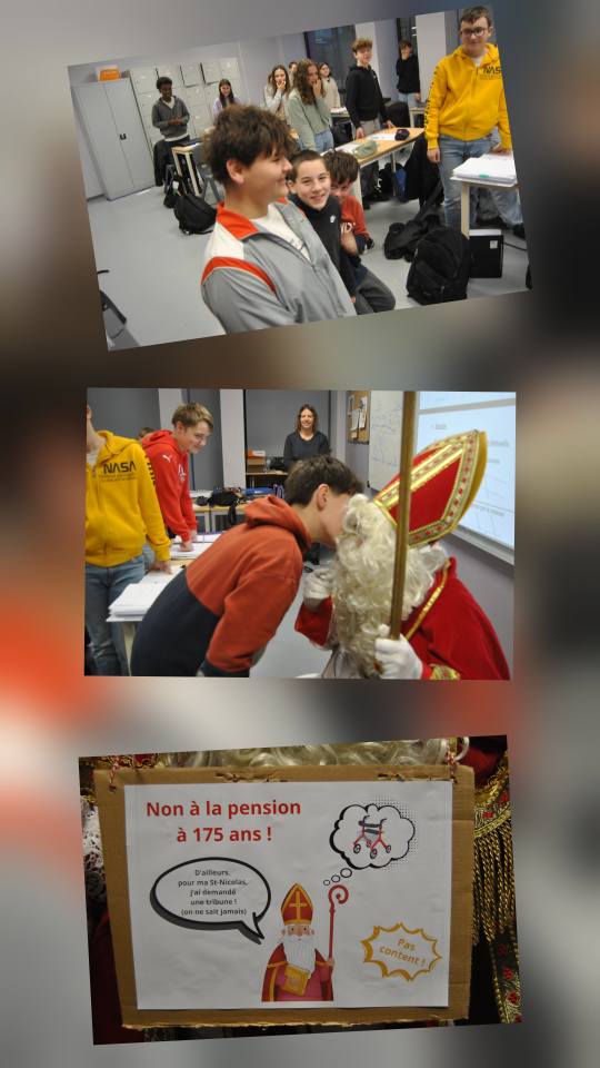 11 Déc,2025 François Delnatte Articles Clics : 330 Saint-Nicolas 2025 Aujourd'hui, le Grand Saint a fait une petite pause au CESP. Petits et grands, sages et moins sages, ont pu partager quelques instants avec lui. Article précédent : Voeux par les 5-6TQ Education Précédent Article suivant : Visite du musée gallo-romain en 1R Suivant